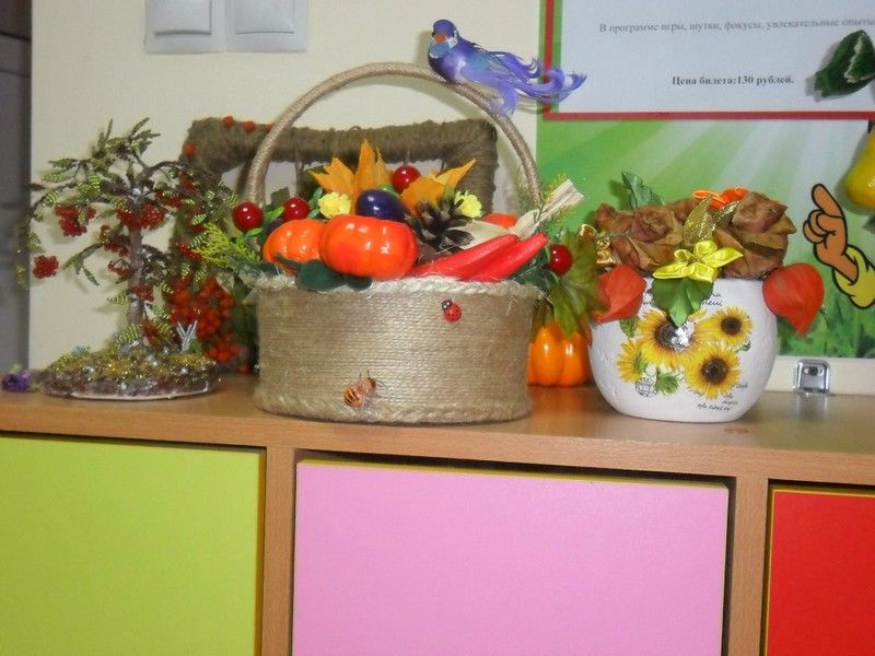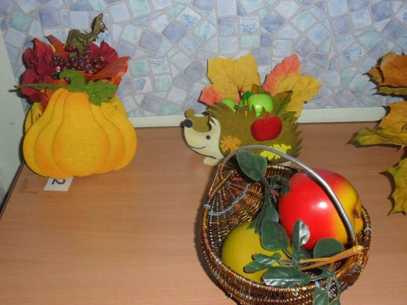 В нашем саду - новая выставка: "Краски осени". В экспозиции - поделки на осеннюю тематику.
