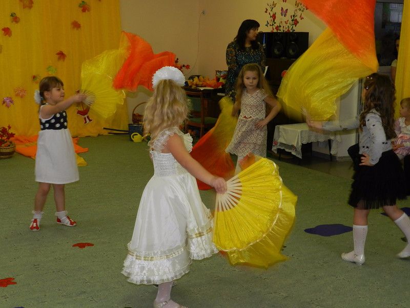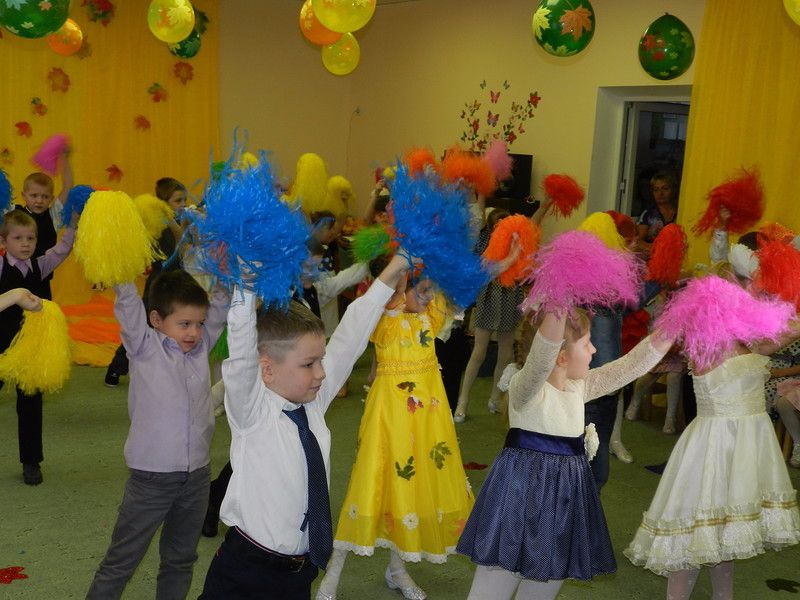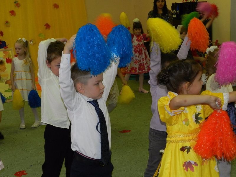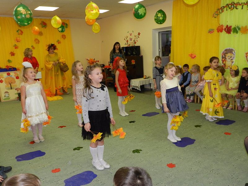 Детские песни об осени, перелетных птицах, грибах, тематические танцы наполнили праздник. Ребята отгадывали загадки, играли в игры.