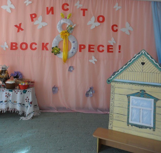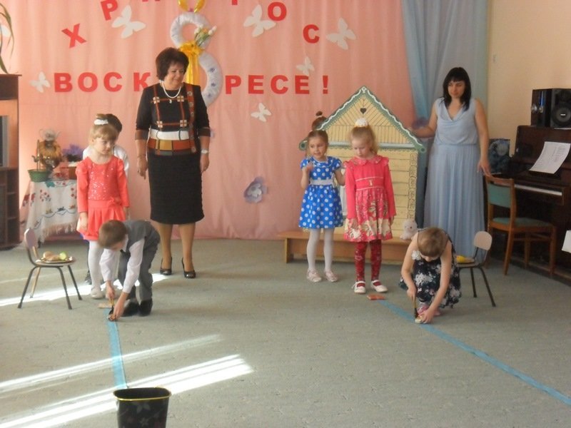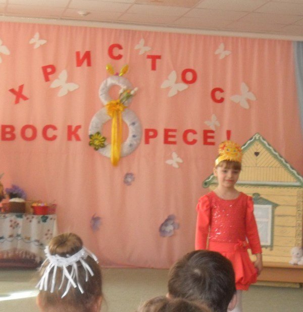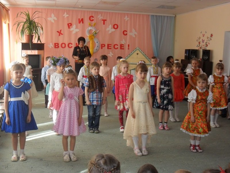 10 апреля в МБДОУ-детском саду №12 «Дюймовочка» прошло театрализованное представление «Светлая Пасха» при участии детей старшей и подготовительной групп. На праздник был приглашен протоиерей храма Петра и Павла - отец Сергий. Гостями праздника были сотрудники ДОУ и воспитанники младшей и средней групп. Воспитанники ДОУ читали стихи, пели песни, танцевали, играли с крашенками, показали пасхальную сказку о вере в Бога и послушании по мотивам сказки «Гуси-лебеди». По завершению праздника, отец Сергий всех детей окропил святой водой, раздал крашеные яйца и поздравил со Светлой Пасхой.