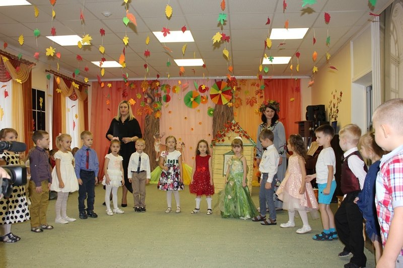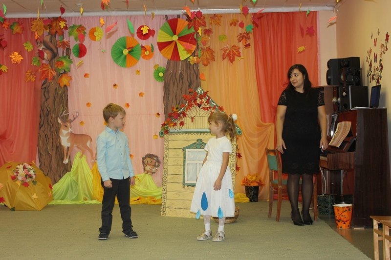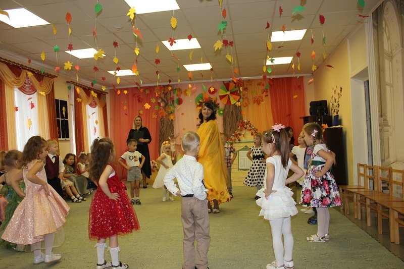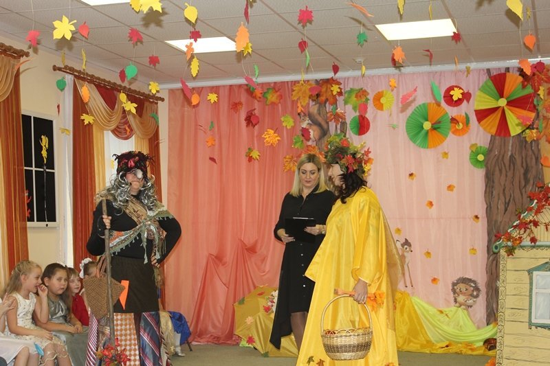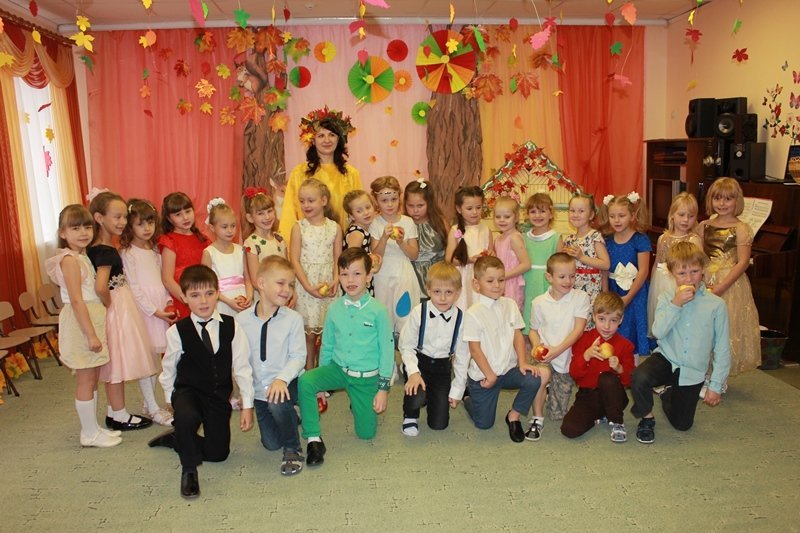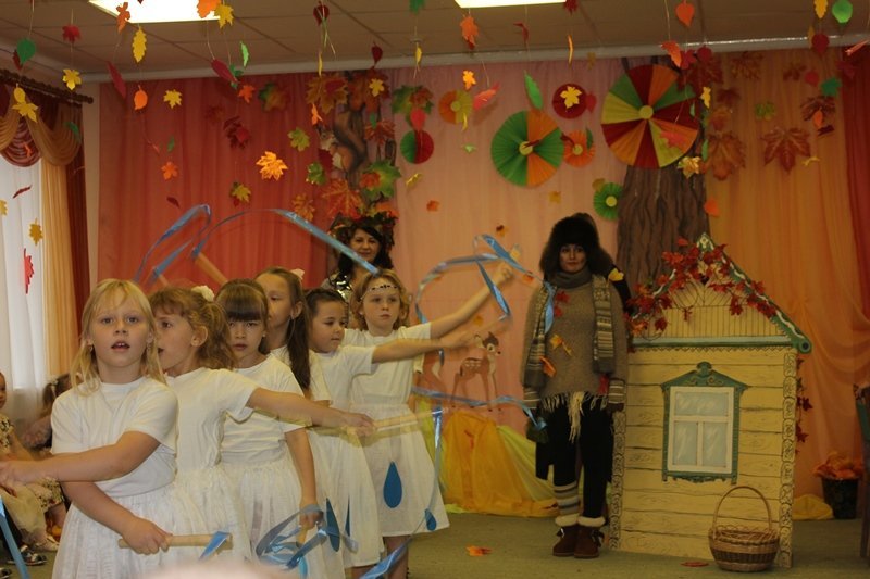 Традиционно, в октябре, в детском саду №12 "Дюймовочка" проводится Праздник Осени. Так 31 октября и 1 ноября у наших воспитанников прошли тематические утренники под названием «Путешествие в осенний лес» и " Волшебная кисть царицы Осени" На улице холодно, а у нас в музыкальном зале уютная, дружеская и веселая атмосфера. В украшенном по - осеннему зале дети рассказывали стихи, пели песни об осени, дожде, о богатом урожае, танцевали, играли в разные игры и с нетерпением ждали прихода главной гостьи праздника - Осени, весёлого гнома, проказницы Простуды и Бабы Яги, которая превращала свою избушку в расписной терем. Очень ярким и запоминающимся эпизодом праздника стал сюрпризный момент – корзина с яблоками для всех ребят – подарок осени!