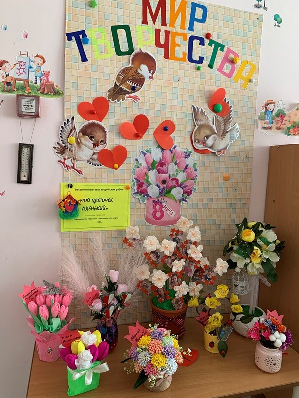 Накануне этого события в МБДОУ-детский сад №12 «Дюймовочка» была организована выставка творческих работ - «Мой цветочек аленький».
