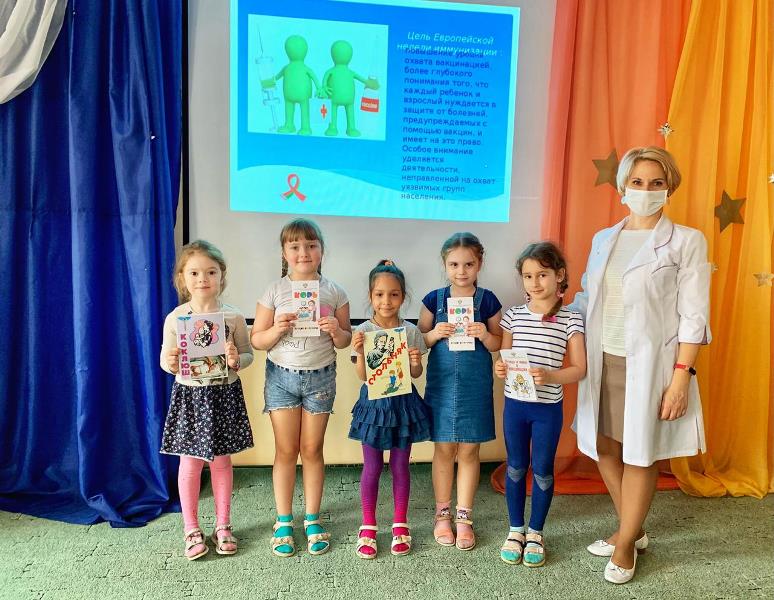 23 апреля в рамках проведения Европейской недели иммунизации в МБДОУ - детский сад №12 "Дюймовочка" с воспитанниками разных возрастных групп были проведены беседы о пользе профилактических прививок, показаны тематические мультфильмы и презентации. В группах - изготовлены и размещены папки- передвижки соответствующей тематики