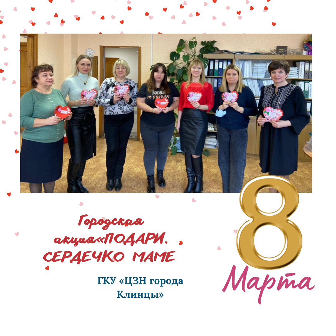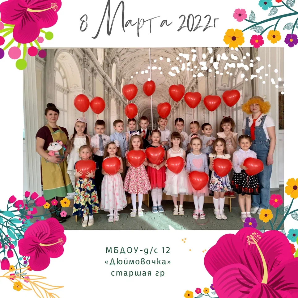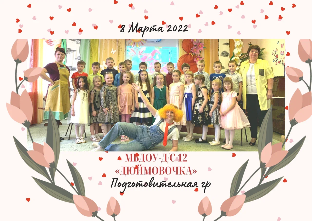 В преддверии празднования "МЕЖДУНАРОДНОГО ЖЕНСКОГО ДНЯ 8 МАРТА" по традиции в нашем ДОУ проводился ряд тематических мероприятий. Для младших дошкольников состоялся праздник "Паровозик из Ромашкина", для старших дошкольников было проведено музыкальное мероприятие "Фрекен Бок и Карлсон в гостях у ребят". В течении недели воспитанники детского учреждения участвовали в выставке творческих поделок "Весенняя фантазия". В завершении подготовки праздника наш МБДОУ детский сад №12 "Дюймовочка" принял участие в ежегодной городской акции "Подари сердечко маме". Представитель от лица всего ДОУ поздравил весь женский коллектив ГКА "ЦЗН города Клинцы" памятными открытками и добрыми пожеланиями.